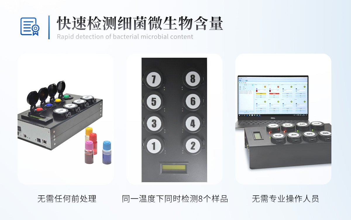 7. 檢測儀的靈敏度是多少? 答:可以檢測到 1 個(gè)活菌的理論極限值。 |
