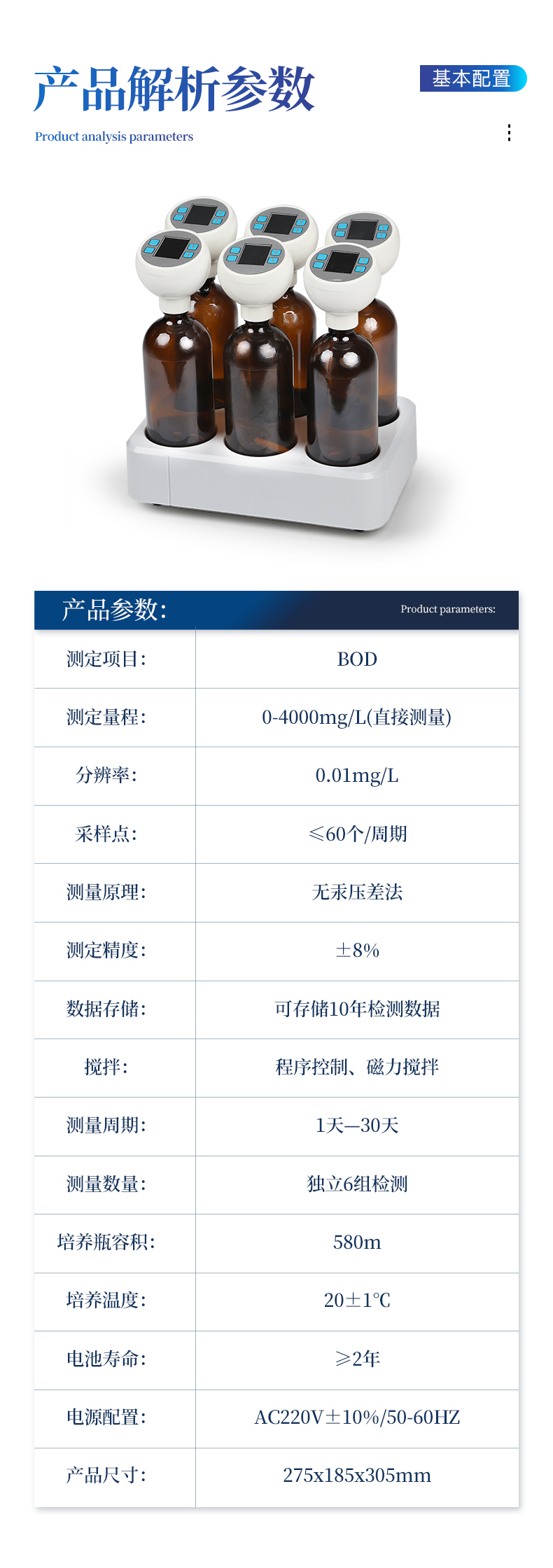 BOD生化需氧量測(cè)定儀是根據(jù)國(guó)家標(biāo)準(zhǔn)《HJ505-2009》5日培養(yǎng)法,模擬自然界中有機(jī)物的生物降解過(guò)程,采用簡(jiǎn)單、安全、可靠的無(wú)汞壓差感測(cè)法測(cè)量水中BOD;全智能化設(shè)計(jì),**的研發(fā)工藝和設(shè)計(jì)制造,實(shí)驗(yàn)過(guò)程無(wú)需實(shí)驗(yàn)人員值守;適用于排污企業(yè)、環(huán)境監(jiān)測(cè)、污水處理廠、第三方檢測(cè)機(jī)構(gòu)、科研、高校等領(lǐng)域的生化需氧量測(cè)定。