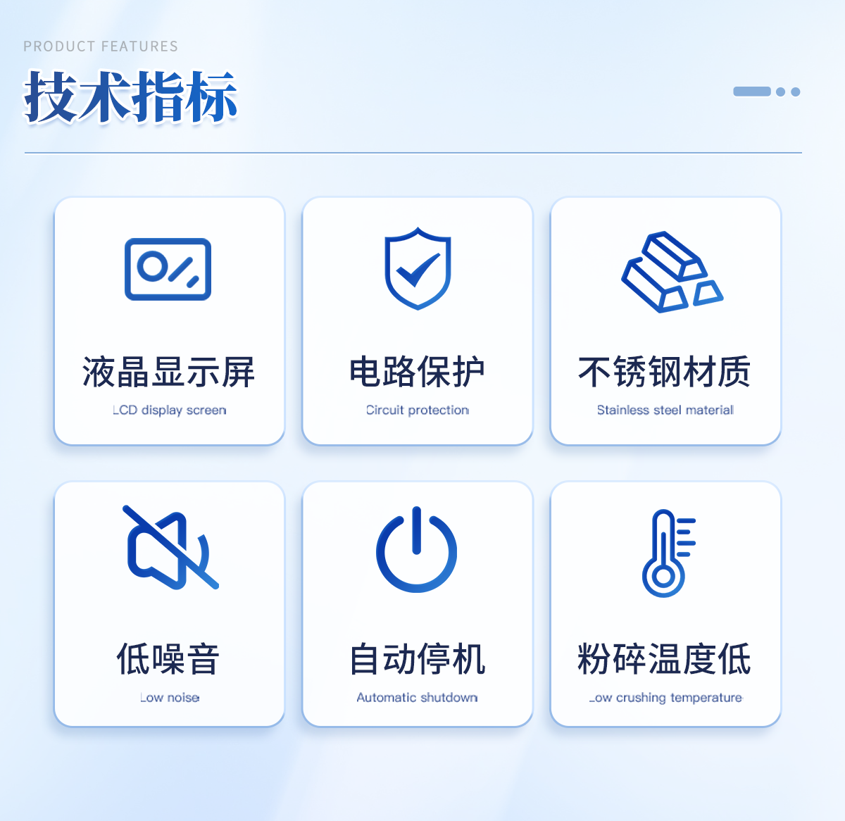 ★21、具有溫控功能,可設(shè)定溫度自動(dòng)停機(jī),調(diào)節(jié)轉(zhuǎn)速,進(jìn)料速度,粉碎時(shí)間