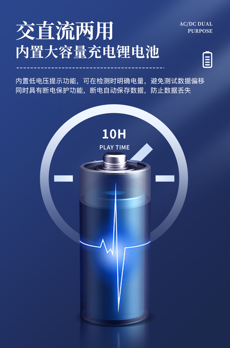 20、內置低電壓提示功能,可在檢測時明確電量,避免測試數據偏移,同時具有斷電保護功能,斷電自動保存數據,防止數據丟失。