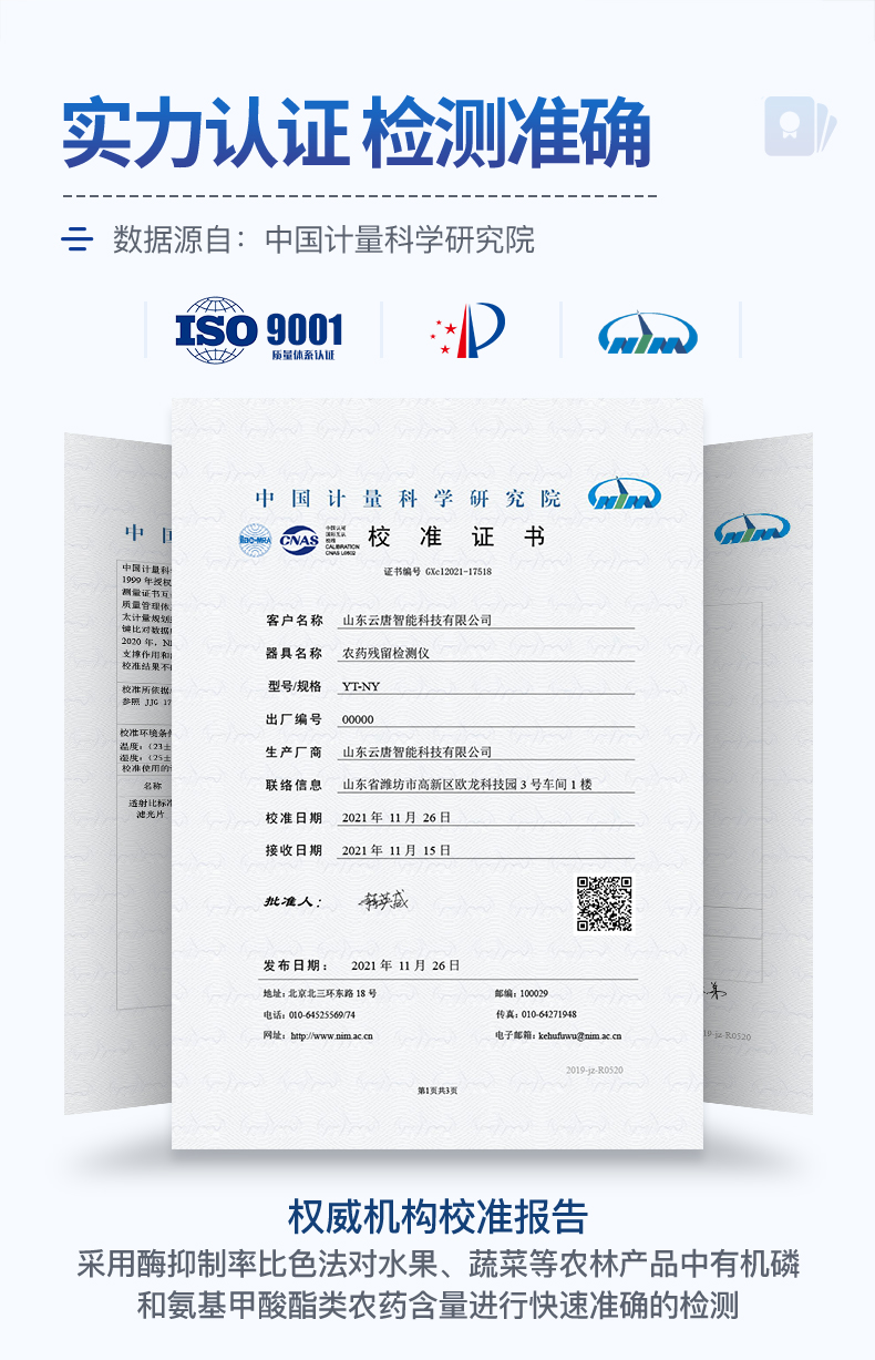 山東云唐智能科技有限公司生產的農藥殘留檢測儀廣泛應用于主要用于蔬菜、水果、茶葉、糧食、農副產品等食品中農藥殘留的快速檢測,依據國標GB/T5009.199-2003進行檢測,適用于果蔬茶生產基地以及農貿批發銷售市場現場檢測,餐館、學校、食堂、家庭果蔬加工前的安全速測等。