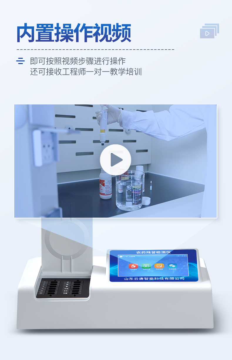 山東云唐智能科技有限公司生產(chǎn)的農(nóng)藥殘留檢測儀廣泛應(yīng)用于主要用于蔬菜、水果、茶葉、糧食、農(nóng)副產(chǎn)品等食品中農(nóng)藥殘留的快速檢測,依據(jù)國標(biāo)GB/T5009.199-2003進行檢測,適用于果蔬茶生產(chǎn)基地以及農(nóng)貿(mào)批發(fā)銷售市場現(xiàn)場檢測,餐館、學(xué)校、食堂、家庭果蔬加工前的安全速測等。