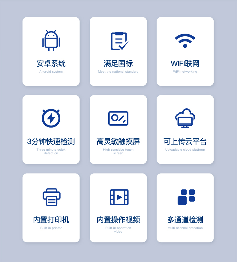 | 1)可加配語音報讀功能,人性化指導(dǎo)操作。 | 2)儀器可實現(xiàn)自身加熱功能。 | 3)可配置大容量鋰電池。 |
