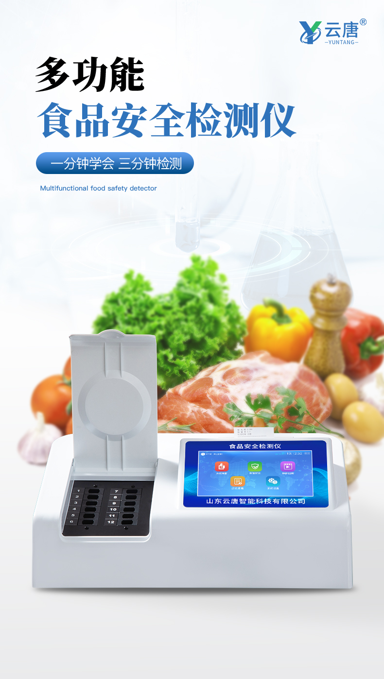 可快速檢測各類食品中的甲醛、吊白塊、二氧化硫、亞硝酸鹽、雙氧水、硼砂、農藥殘留、乳及乳制品中蛋白質、硝酸鹽、重金屬鉛的含量,儀器預留其他項目檢測程序和端口,根據日后需求可方便的自主增加檢測項目。