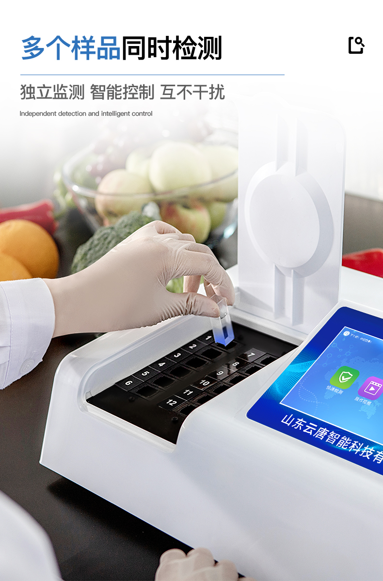 1、檢測項目:可快速檢測各類食品中的甲醛、二氧化硫、亞硝酸鹽、吊白塊、農藥殘留的含量,儀器預留其他項目檢測程序和端口,根據日后需求可方便的自主增加檢測項目。