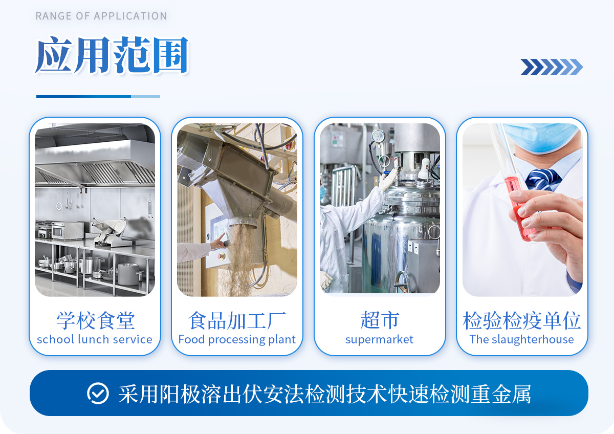 可快速檢測重金屬鉛、鎘、銅、鋅、汞、砷等。