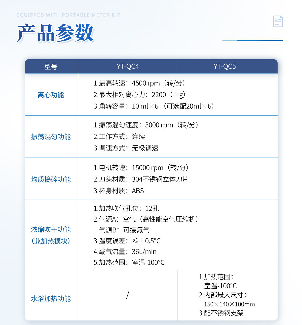 應國內用戶的實際需求,自行研制開發的新型儀器——QC05型樣品前處理一體機。樣品前處理集成箱將樣本前處理過程中樣品濃縮、水浴恒溫、離心分層、均質、振蕩混勻等步驟所需設備進行集成,僅需一臺樣品前處理集成箱設備即可完成所有樣本前處理過程,并且方便攜帶,不僅適用于現場檢測使用,還可用于色譜、質譜等分析樣品的純化和制備。
