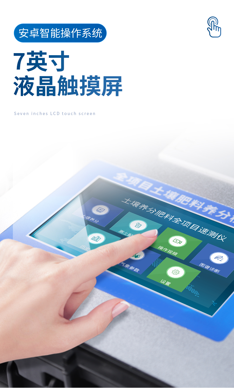 ★1、Android安卓智能操作系統,主控芯片采用ARM Cortex-A7,RK3288/4核處理器,主頻1.88Ghz,運轉速度更快速,穩定性更強。 | ★2、12個檢測通道,一次性可快速檢測12個樣品,極大提升檢測效率,降低檢測成本。 | ★3、采用高精度濾光片技術自主專利分析方法(***:** 2020 2 1763837.9),權威認證。 | ★4、檢測過程中內置校準功能,智能恒流穩壓,光強自動校準,確保檢測準確度,取得中國計量科學研究院的《校準證書》。 | ★5、儀器標配wifi無線上傳、4G聯網傳輸、GPRS無線遠傳,快速上傳數據。 | ★6、配有智慧云農業平臺,儀器連入無線網絡后,可將檢測數據可選擇性或批量無線上傳,方便用戶進行長期數據管理和可視化分析。 | 7、儀器配同時具有USB接口、以太網接口,內置大容量內存,并可隨時用U盤拷貝數據。 | ★8、可用手機隨時登錄云平臺在線移動查看歷史數據 | ★9、內置作物專家施肥系統,可對百余種全國農業經濟作物、果樹等的目標產量計算推薦施肥量,依據施肥配方科學指導農業生產。測土配方施肥結果可打印,打印內容包含:作物種類、肥料種類、目標產量、需求總量、建議施肥方案。 | 10、內置植物營養診斷標準圖譜,根據各農作物營養缺失的圖片,進行葉面對比,診斷豐缺。 | ★11、4波長專業測試冷光源(紅、藍、綠、橙),光源波長穩定,長時間連續工作光源無溫漂現象,壽命長達10萬小時級別,重現性好,準確度高。 | 12、比色池部分采用標準1cm比色皿,無機械位移及磨損,光路測試定位**,有效屏蔽外光干擾,保證檢測結果優于國標要求。 | ★13、儀器系統內帶有樣品前處理操作視頻,各種樣品檢測方法點擊視頻模塊即可觀看,檢測人員無需自學說明書,指導教學方便快速,方便新手快速操作。 | 14、內置新一代高速熱敏打印機(無需色帶),打印內容包含:檢測單位、檢測人員、檢測項目、通道號、吸光度、養分含量(mg/kg)、檢測時間、以及二維碼等信息 | ★15、高靈敏7寸真彩觸摸屏,采用更加**和人性化操作,高清晰高交互顯示,大程度降低傳統儀器的繁瑣操作和失誤,并取得多項《軟件著作權》。 | 16、內置時鐘功能,方便操作時間記錄,長期歷史追溯。 | 17、可設置多賬戶賬號密碼登錄,**UI交互界面,不同的用戶可自由添加編輯檢測信息,保存后可長期使用。 | 18、GPS功能:可在野外作業時記錄經緯度地點,滿足特殊用戶需求。 | 19、內置低電壓提示功能,可在檢測時明確電量,避免測試數據偏移,同時具有斷電保護功能,斷電自動保存數據,防止數據丟失。 | 20、交直流兩用供電方式,內置大容量充電鋰電池,滿電狀態下可連續工作10余小時,同時可外接車載電源蓄電。 | ★21、儀器具有中英文切換功能,可滿足出口要求。 | 22、高強度PVC工程塑料手提箱設計,堅固耐用,便于攜帶。 |