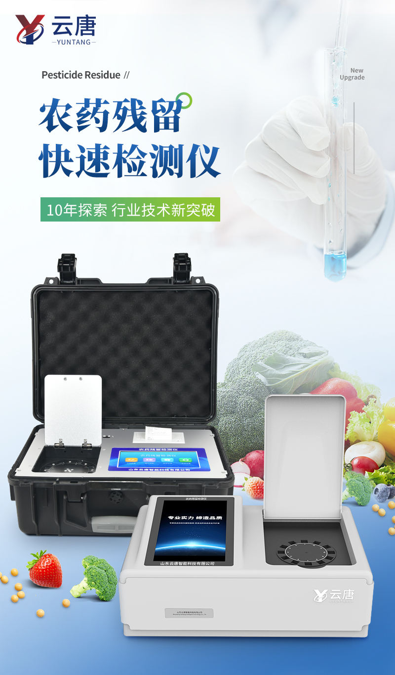 山東云唐智能科技有限公司生產的農藥殘留檢測儀廣泛應用于主要用于蔬菜、水果、茶葉、糧食、農副產品等食品中農藥殘留的快速檢測,依據國標GB/T5009.199-2003進行檢測,適用于果蔬茶生產基地以及農貿批發銷售市場現場檢測,餐館、學校、食堂、家庭果蔬加工前的安全速測等。