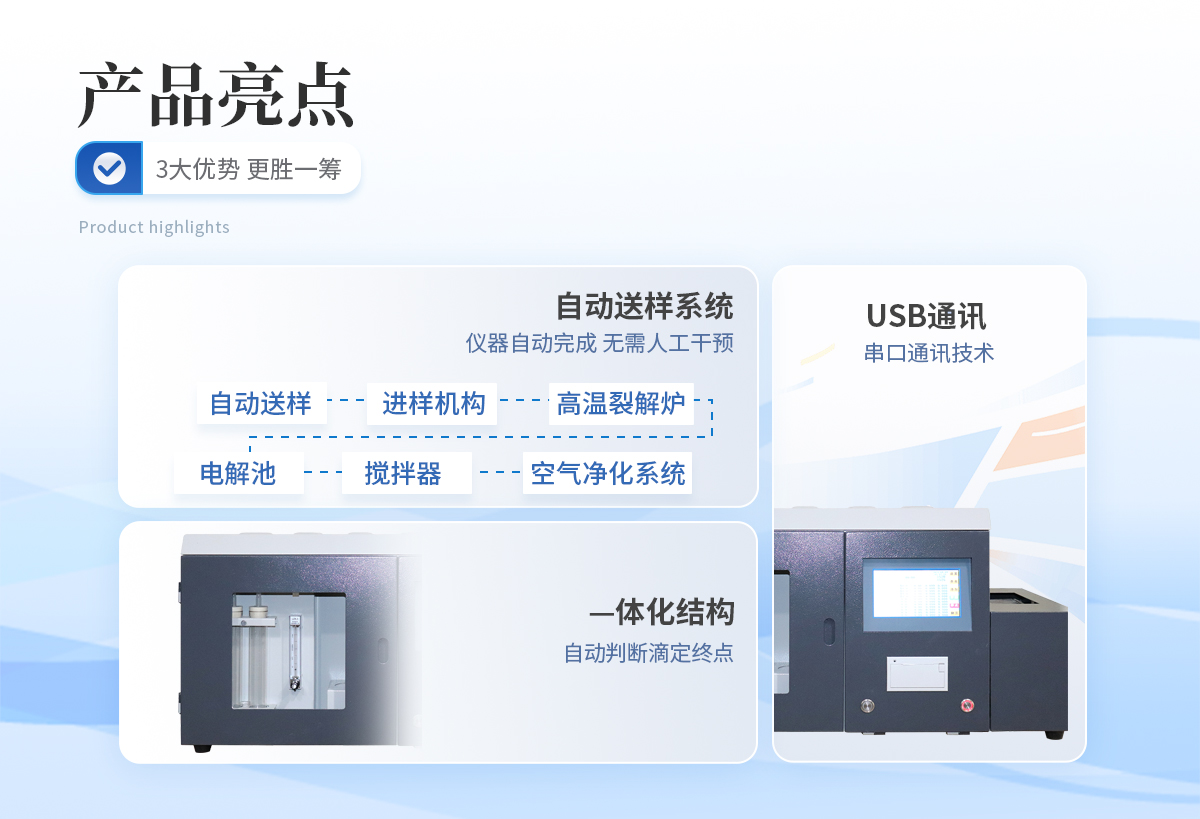 1、 手自一體化自動(dòng)送樣系統(tǒng),將自動(dòng)送樣、進(jìn)樣機(jī)構(gòu)、高溫裂解爐、電解池、攪拌器、空氣凈化系統(tǒng)等部件巧妙地結(jié)合在一起,使儀器結(jié)構(gòu)更加緊湊,更加合理、更加穩(wěn)定。可在線式插隊(duì)添加樣品,無(wú)需人工送樣,自動(dòng)化程度高,若樣品少也可采用手動(dòng)送樣方式。2、采用—體化結(jié)構(gòu),自動(dòng)判斷滴定終點(diǎn),縮短了實(shí)驗(yàn)時(shí)間。所有關(guān)鍵部件均采用了設(shè)計(jì)理念及進(jìn)行了嚴(yán)格的控制,確保儀器能長(zhǎng)時(shí)間穩(wěn)定運(yùn)行。3、采用特別的數(shù)據(jù)采集網(wǎng)絡(luò)及多級(jí)校正技術(shù),確保高、中、低硫含量測(cè)試結(jié)果的準(zhǔn)確性。4、送樣機(jī)構(gòu)采用電子電解液分子濃度采集電路,可靠性高,不會(huì)產(chǎn)生過(guò)電解現(xiàn)象。5、串口通訊技術(shù),可采用usb通訊,兼容性好,具有廣泛的適用性。6、自由設(shè)置送樣時(shí)間及預(yù)置溫度,采用進(jìn)口霍爾元件控制送樣位置。7、采用剛玉瓷舟,減少卡樣的可能。一次可放1-24個(gè)樣由程序控制實(shí)現(xiàn)自動(dòng)升溫、控溫、送樣、測(cè)定,結(jié)果自動(dòng)存盤、自動(dòng)打印,并可中途在線式插隊(duì)添加試樣,大大地提高了工作效率,真正實(shí)現(xiàn)無(wú)人值守;8、采用庫(kù)侖滴定法進(jìn)行測(cè)定,測(cè)定時(shí)間可根據(jù)不同試樣自動(dòng)判斷,速度優(yōu)于艾士卡重量分析法和高溫燃燒中和法;